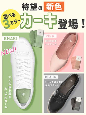 ピットソールは ブラック、ピンク、カーキの3カラー展開*
