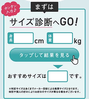 サイズ選びに迷う場合は、公式サイトで身長・体重を入力して確認しておくと判断しやすくなります。